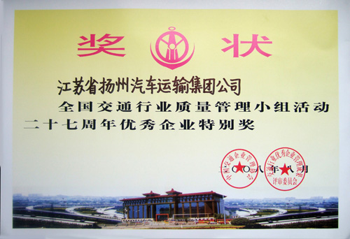 全國(guó)交通行業(yè)質(zhì)量管理小組活動(dòng)二十七周年優(yōu)秀企業(yè)特別獎(jiǎng)獎(jiǎng)狀