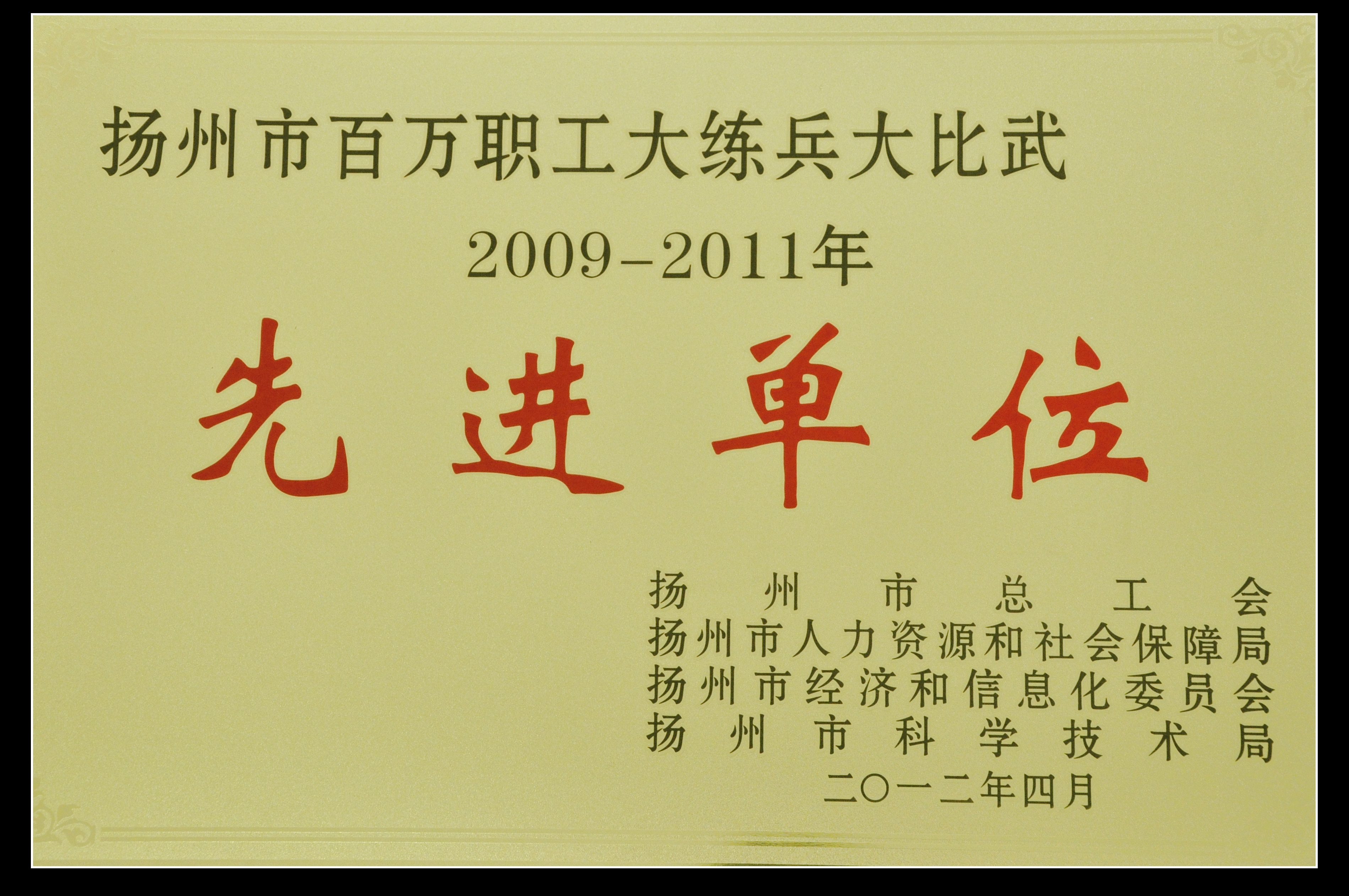 集團(tuán)公司獲揚(yáng)州市百萬(wàn)職工大練兵大比武2009—2011年度先進(jìn)單位