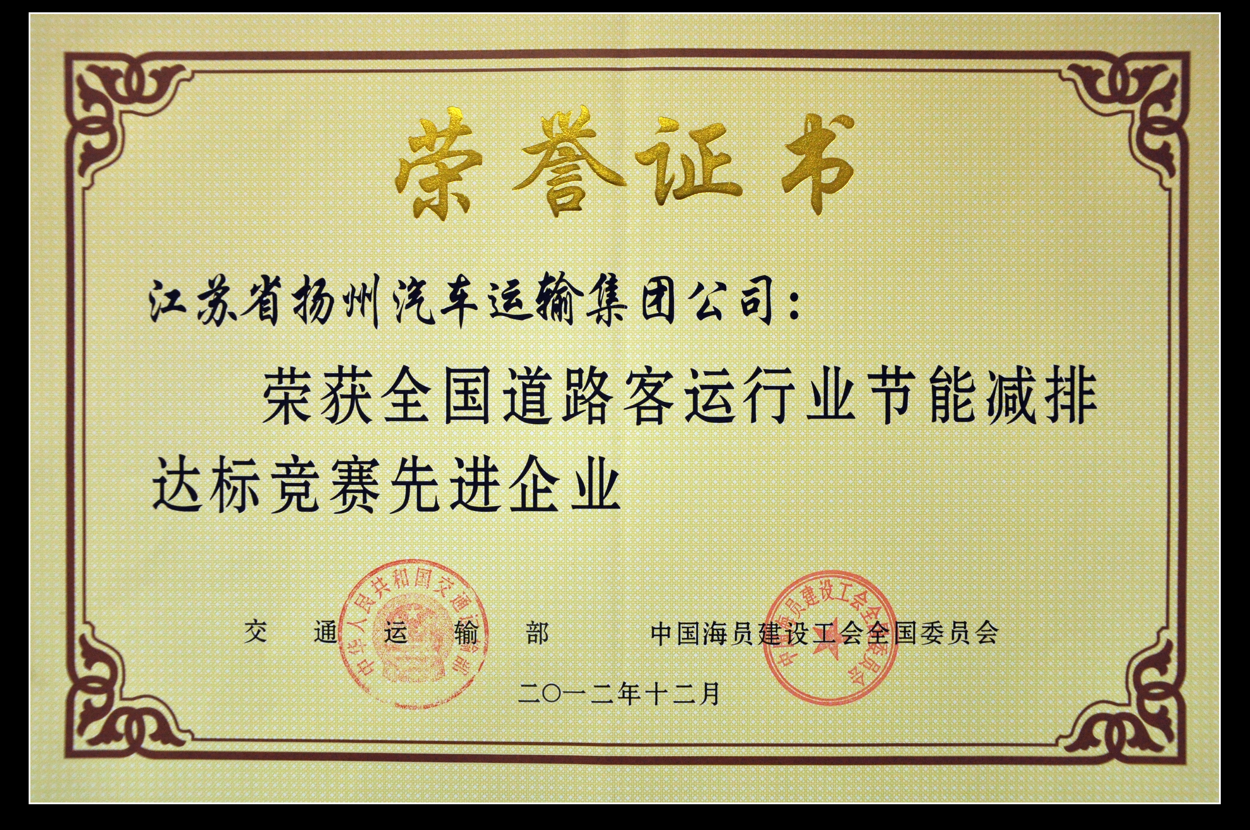 我司榮獲“全國(guó)道路客運(yùn)行業(yè)節(jié)能減排達(dá)標(biāo)競(jìng)賽先進(jìn)企業(yè)”稱號(hào)