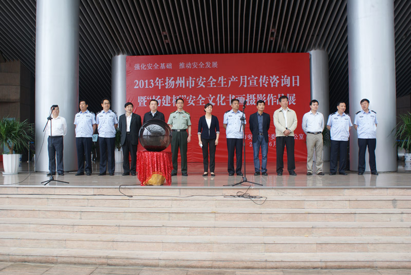 6月9日上午,2013年揚州市“安全生產(chǎn)月”宣傳咨詢?nèi)蒸?ldquo;揚建杯”安全文化書畫攝影作品展在市美術(shù)館北門廣場舉辦。副市長張寶娟出席了當天的活動,并和廣大市民一同參觀安全文化書畫攝影作品。市安監(jiān)局、交通局、公安局、建設(shè)局、氣象局、質(zhì)監(jiān)局等單位領(lǐng)導(dǎo),以及部分駐揚單位職工代表,共計400余人參加了活動。