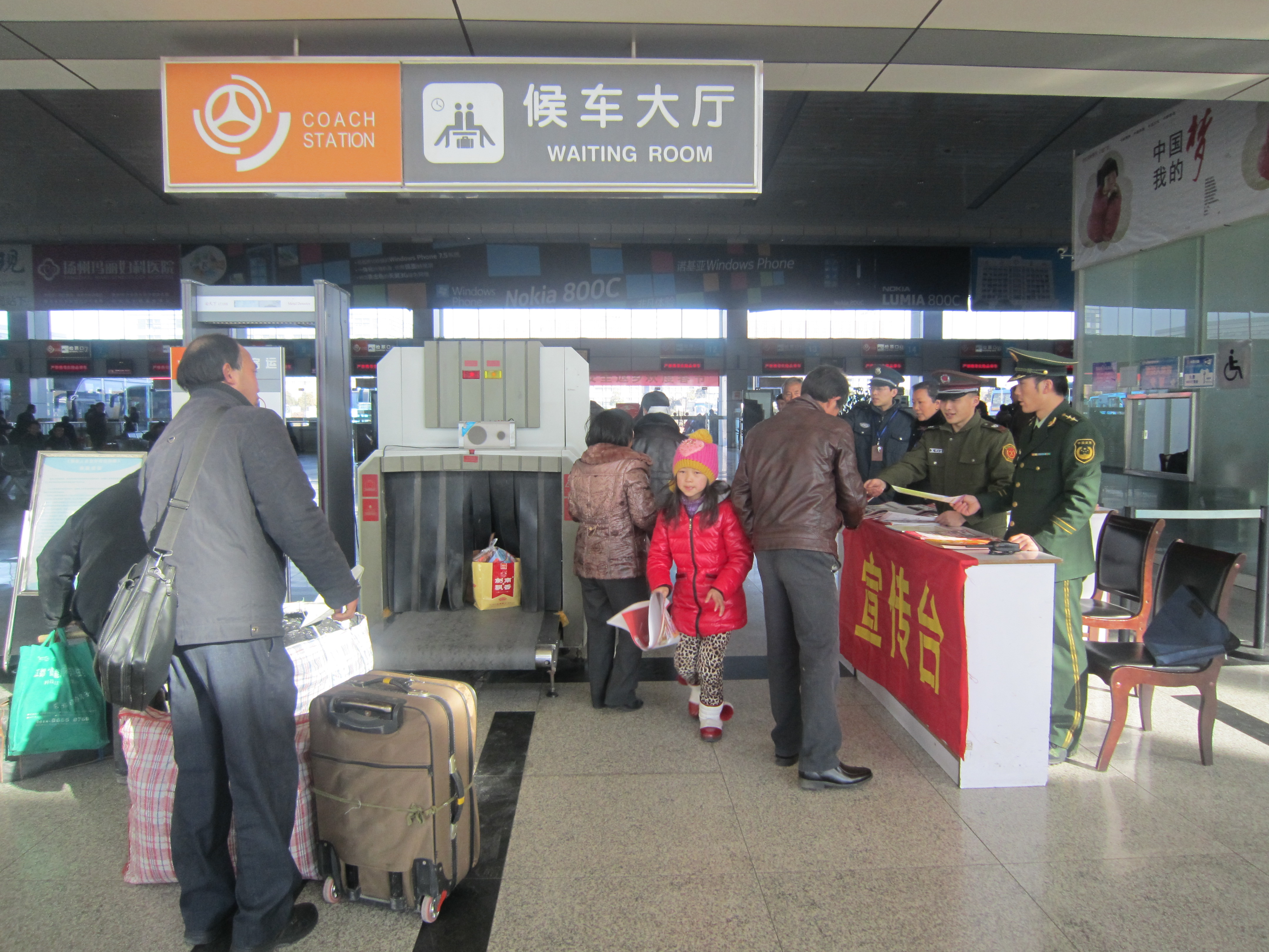 危險品檢查儀旁,紅色的安全宣傳臺引人注目,武警揚州消防支隊的幾名官兵和車站員工一起向接受危險品檢查的旅客熱情發(fā)放宣傳畫,并提醒在返鄉(xiāng)旅程中應(yīng)該注意的安全事項。幾名女官兵還走進候車廳發(fā)放,講解遇有緊急情況時的急救逃生知識。不少旅客在候車過程中,認(rèn)真看著宣傳畫,還不時交流,一旁的官兵不時接受旅客的咨詢,解答他們的問詢。