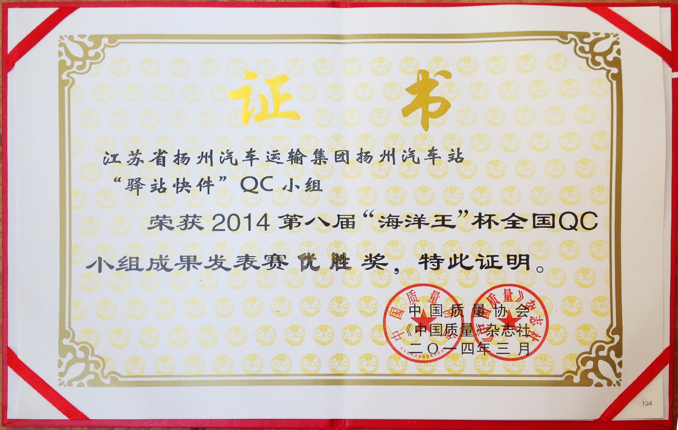 “海洋王”杯QC小組發(fā)表賽是一項(xiàng)全國(guó)性比賽,今年共有300多個(gè)成果報(bào)名,經(jīng)過層層選拔,來自全國(guó)各地QC小組代表500余人,197個(gè)成果參加現(xiàn)場(chǎng)發(fā)布。經(jīng)過5天緊張的成果發(fā)布,我司揚(yáng)州汽車站“驛站快件”QC小組成員余妍、潘潔發(fā)表的《降低到達(dá)庫(kù)收發(fā)貨的誤差率》在激烈的角逐中脫穎而出,獲得第八屆“海洋王”杯最高榮譽(yù)——優(yōu)勝獎(jiǎng),和其他47個(gè)成果一起被直接推薦為2014年度全國(guó)優(yōu)秀QC小組。