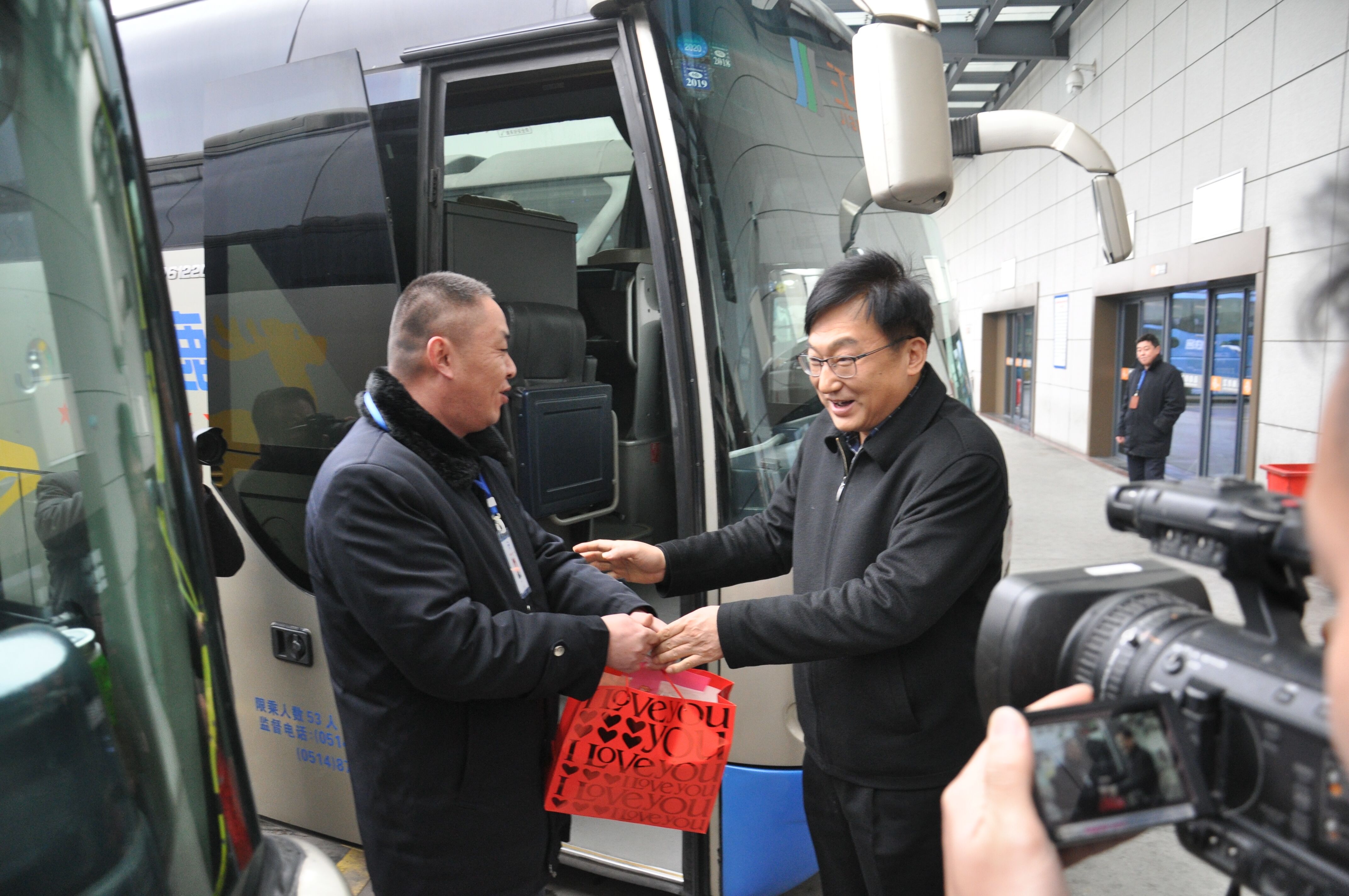 會議結(jié)束后,丁市長一行前往公交和揚汽的場站,對一線駕駛服務(wù)人員進(jìn)行慰問。丁市長還登上揚汽的大巴車,給旅客送上了象征吉祥如意的桔子,祝福大家一路平安,闔家幸福。
