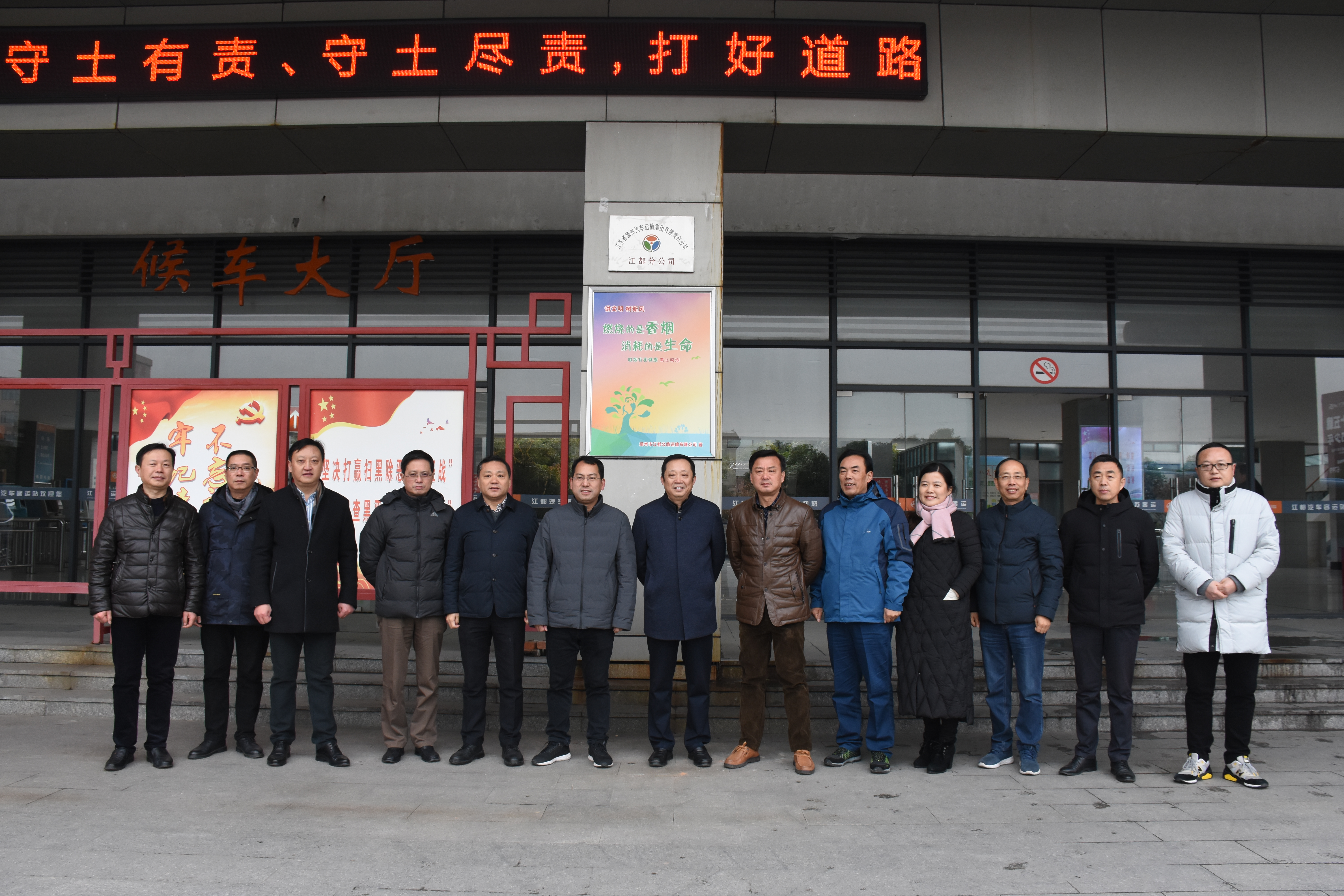 9時18分,隨著掛著江蘇省揚州汽車運輸集團有限責任公司江都分公司的牌子正式揭曉,標志著分公司以嶄新的面貌正式開業(yè)運營。隨后,在江都分公司經理劉俊的陪同下,龔宇峰董事長來到候車大廳,對節(jié)假日期間車站的運力、配套服務以及安全生產責任落實等情況進行了詳細了解。他強調,安全無小事,分公司要切實落實安全監(jiān)管責任,統(tǒng)籌抓好各類安全生產和服務工作,在春運即將拉開帷幕之前開個好頭。