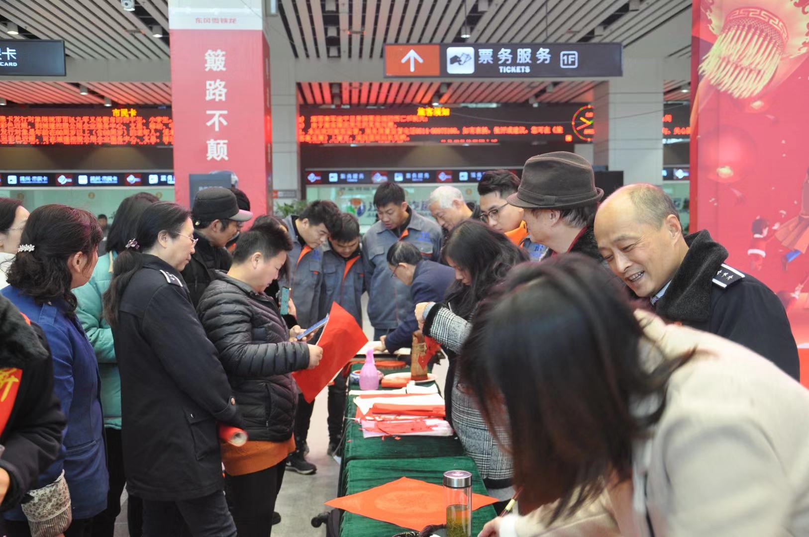 活動(dòng)現(xiàn)場(chǎng),揚(yáng)州市書法協(xié)會(huì)、剪紙協(xié)會(huì)、揚(yáng)州汽車站的志愿者和旅客們進(jìn)行了書法、剪紙創(chuàng)作送祝福的互動(dòng),在這寒冷的冬季,為歸鄉(xiāng)的旅客送去溫馨的祝福,讓旅客“溫暖相伴·幸;丶”。