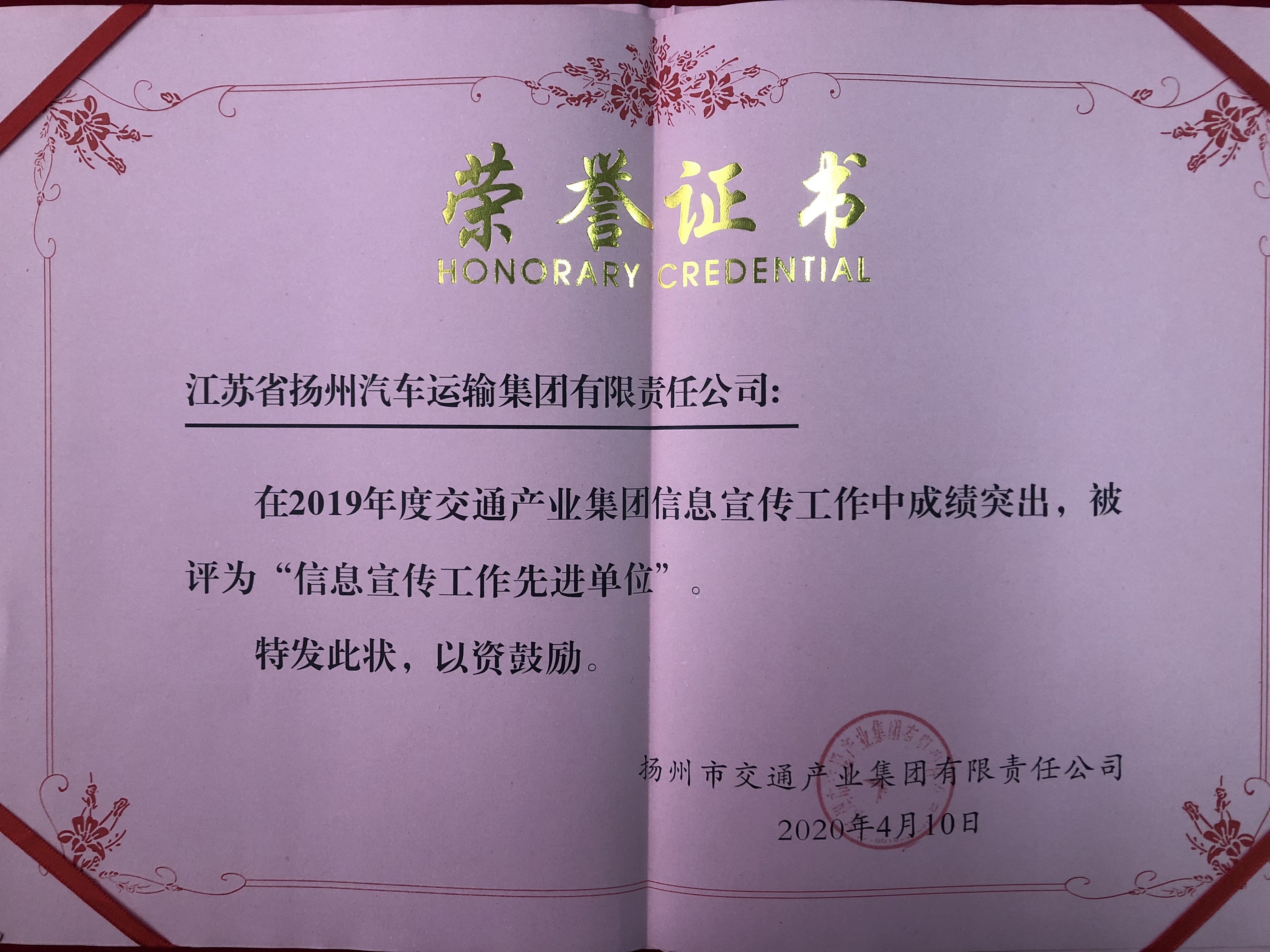 4月10日下午,市交通產(chǎn)業(yè)集團(tuán)召開信息宣傳工作會,會上表彰了2019年度信息宣傳工作中的先進(jìn)集體和個(gè)人,揚(yáng)汽集團(tuán)獲得“信息宣傳工作先進(jìn)單位”稱號;另有三名同志分別獲“信息宣傳工作先進(jìn)個(gè)人”和《揚(yáng)州交通產(chǎn)業(yè)集團(tuán)年鑒》(2018)優(yōu)秀撰稿二等獎(jiǎng)。