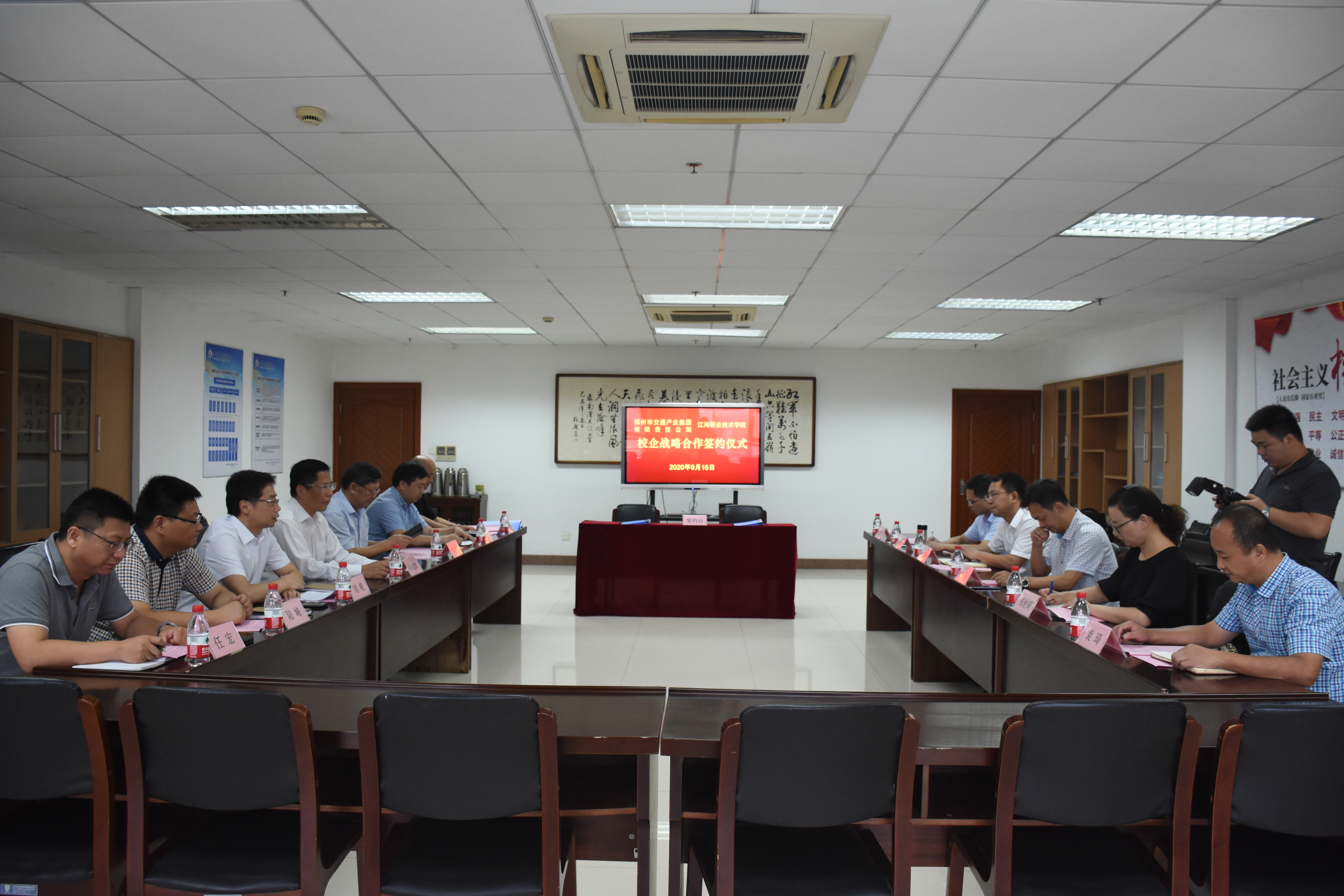 9月16日,揚州市交通產(chǎn)業(yè)集團有限責(zé)任公司與江海職業(yè)技術(shù)學(xué)院,校企戰(zhàn)略合作暨駕駛培訓(xùn)項目簽約儀式在江海學(xué)院隆重舉行。江海學(xué)院董事長、校長孫永如,常務(wù)副校長、黨委副書記余如進(jìn),副校長劉峻等校方領(lǐng)導(dǎo),交通產(chǎn)業(yè)集團黨委書記、董事長凌衛(wèi)東,交通產(chǎn)業(yè)集團副總經(jīng)理兼揚汽集團黨委書記、董事長龔宇峰,揚汽集團黨委副書記顧懷及交通產(chǎn)業(yè)集團、揚汽集團相關(guān)負(fù)責(zé)人出席簽約儀式。