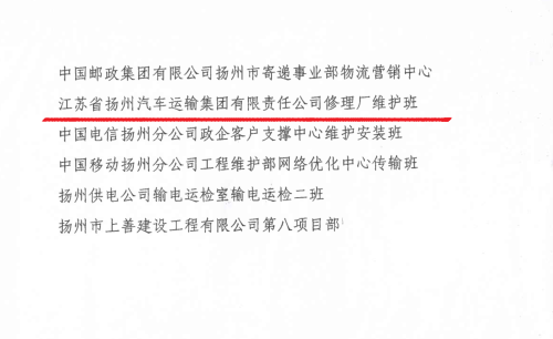 2020年,揚(yáng)汽集團(tuán)修理廠維護(hù)班切實(shí)落實(shí)“安全第一、服務(wù)第一、質(zhì)量第一”總目標(biāo),以突出的成績,被共青團(tuán)揚(yáng)州市委與揚(yáng)州市應(yīng)急管理局授予“揚(yáng)州市青年安全生產(chǎn)示范崗”稱號。