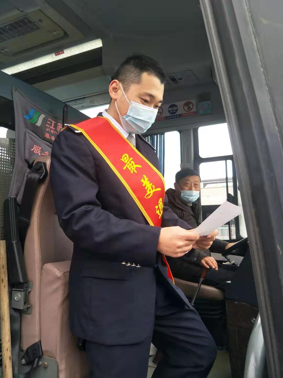 “您乘坐的車輛已經(jīng)消毒過,請(qǐng)放心上車…,老人家,你倆戴的口罩破了,我這有新的,請(qǐng)你換上…,請(qǐng)大家保持一米距離檢票,時(shí)間充裕,不會(huì)耽誤大家行程…,請(qǐng)大家檢票上車后,系帶好安全帶,口罩不能摘…”。一連串的溫馨提醒和戴著口罩仍在眉宇間“跳躍”著的笑容,讓旅客感到十分暖心?诓煌、手不停每天數(shù)百遍地完美重復(fù)為旅客服務(wù)的場(chǎng)景,正是她幾年軍營(yíng)生活、過硬作風(fēng)養(yǎng)成的積淀,更是她退役轉(zhuǎn)崗后,愛崗敬業(yè)的生動(dòng)寫照。前幾日的一天下午,有位蘇州的旅客一旁候車時(shí),看到當(dāng)班吳琳檢票發(fā)車時(shí)嫻熟的連貫動(dòng)作和麻利果斷指揮發(fā)車標(biāo)準(zhǔn)旗語手勢(shì)時(shí),情不自禁地掏出手機(jī),“啪差…”拍個(gè)不停,嘴里還自言自語道:“這個(gè)畫面好,這個(gè)畫面好…”。