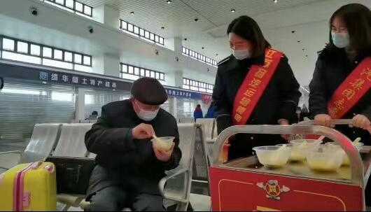 一位老先生端著湯圓,連聲說謝,在品嘗了湯圓之后,露出滿臉笑容,滿口稱贊,稱贊我們的工作熱情、溫暖,讓身在異鄉(xiāng)的旅客們也感受到家的溫馨。在給旅客送溫暖、送祝福的同時(shí),車站領(lǐng)導(dǎo),也未忘記一線職工,也給他們送上了甜甜的湯圓和節(jié)日祝福,祝他們生活團(tuán)團(tuán)圓圓,日子甜甜蜜蜜。