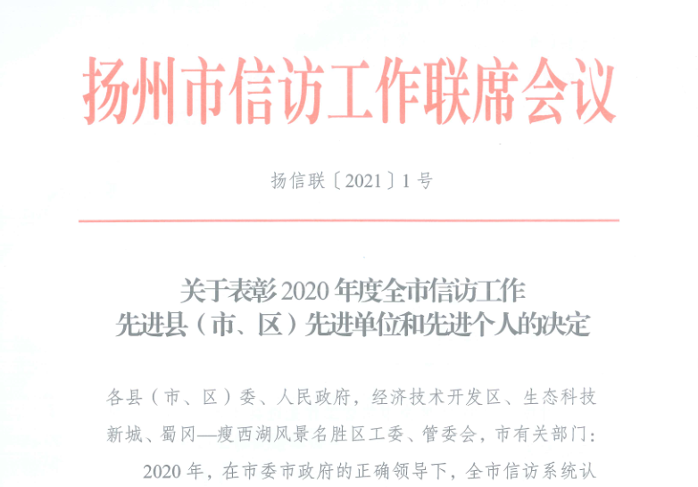 近日,揚州市信訪工作聯(lián)席會議印發(fā)《關(guān)于表彰2020年度全市信訪工作先進(jìn)縣(市、區(qū))先進(jìn)單位和先進(jìn)個人的決定》,揚汽集團(tuán)汽車東站黨支部書記、副站長張彤獲信訪工作先進(jìn)個人。