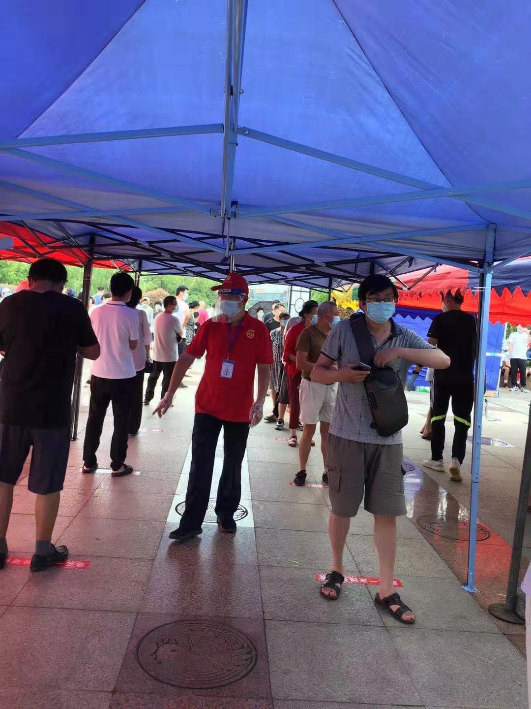 揚州疫情爆發(fā),牽動著每個人的心,黃建軍是揚州站的值班站長,作為一名老黨員,主動報名加入防疫阻擊戰(zhàn),于8月3日前往邗江區(qū)邗上街道進行志愿服務,深夜在臨時增加的來鶴臺廣場核酸檢測點貼地標,準備各種用品,大、小垃圾桶等,協(xié)助社區(qū)做好準備工作。第二天早上5點,在五里社區(qū)來鶴臺廣場開展第三次核酸檢測志愿服務工作,負責4千多戶居民的秩序維護。8月7日,他又前往邗上街道蘭莊社區(qū)望月苑核酸檢測點參加志愿服務,用平凡的堅守,打造戰(zhàn)“疫”路上的最強盾牌。