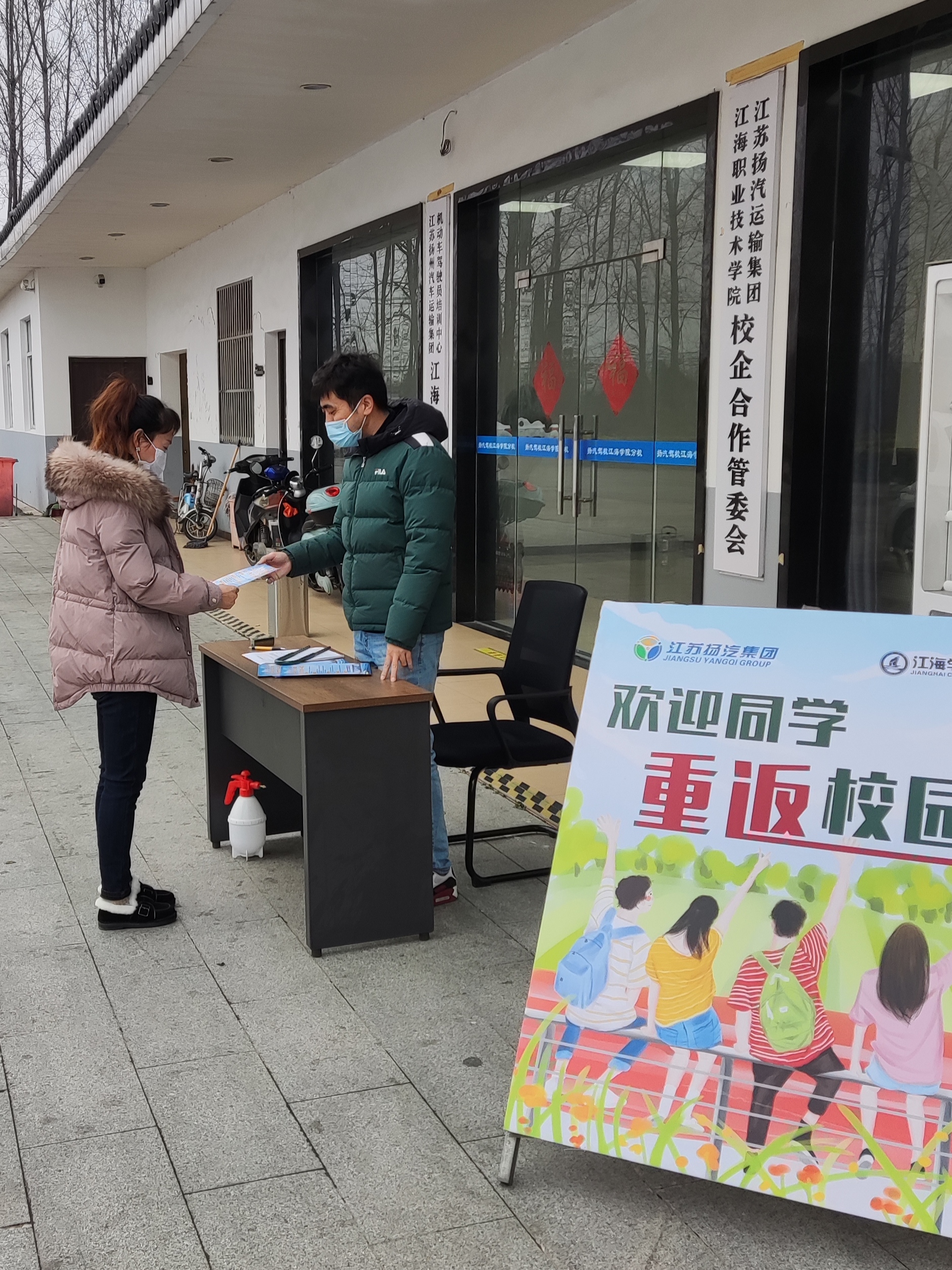 為確保本次迎新活動的安全、順利,揚(yáng)汽駕校積極對接、配合江海學(xué)院,嚴(yán)格做好各項(xiàng)疫情防控措施,設(shè)置專用通道,安排專人進(jìn)行人員疏導(dǎo)、測溫、掃碼登記。