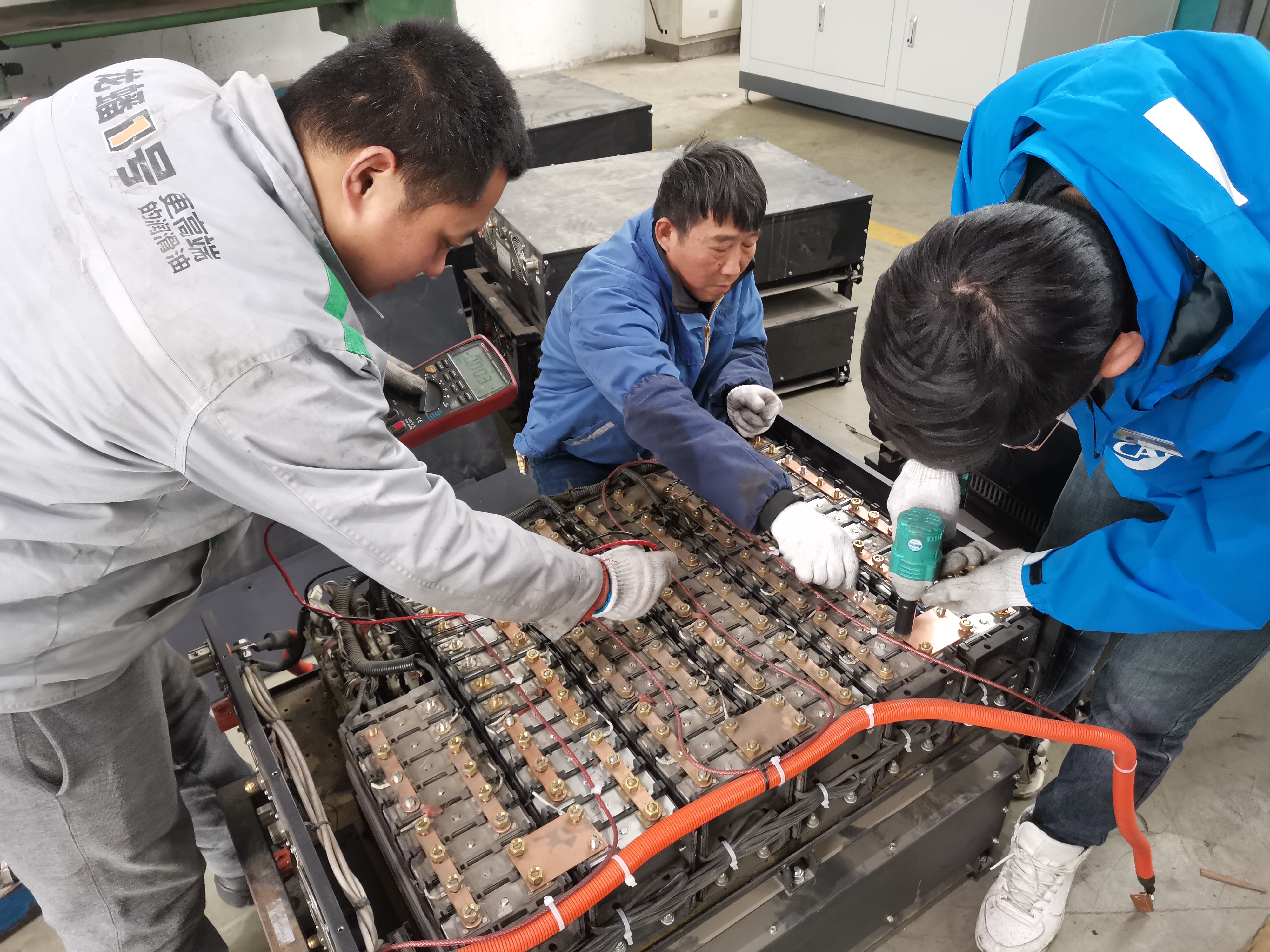 整改期間,修理廠高度重視,積極推進隊伍建設,組織技術中心六名骨干人員,采用兩人一組,“老手”帶“新手”的模式,分批前往亞星裝配車間。后期,雙方為加快推進項目整改進度,亞星直接將這批動力電池發(fā)運到修理廠,修理廠以熟練的箱體拆解、單體檢測、二次篩選、補電維護等系列流程進行維護。