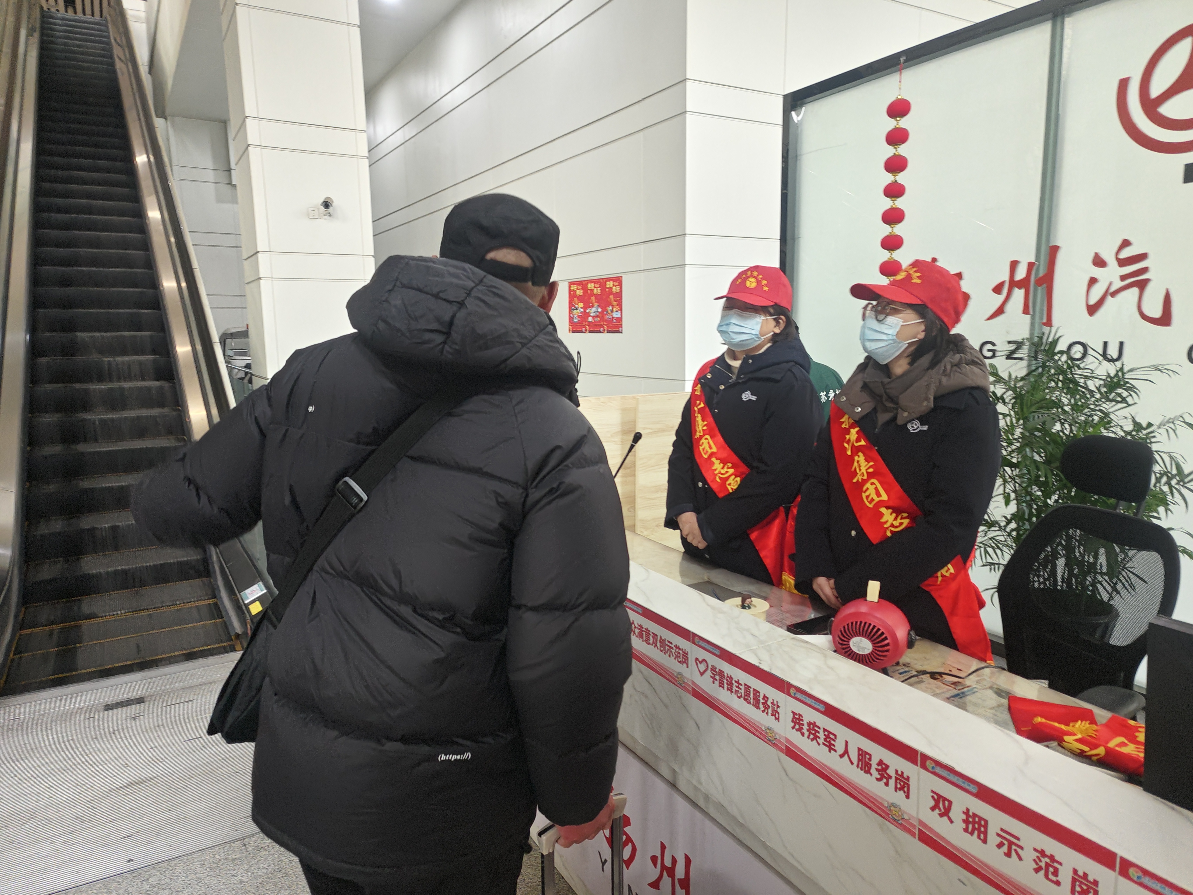 在揚(yáng)汽集團(tuán)的各大汽車(chē)站內(nèi),志愿者們用他們的熱情和愛(ài)心,在車(chē)站安檢處、售票廳、出站口等區(qū)域?yàn)槁每吞峁┲龑?dǎo)咨詢(xún)、秩序維護(hù)、重點(diǎn)幫扶、行李搬運(yùn)等溫馨服務(wù)。一遍又一遍地迎來(lái)送往,他們或?yàn)槁每退蜕洗郝?lián)“福”字,或?yàn)槁每瓦f上一杯熱水。在川流不息的人群中,頭戴小紅帽的志愿者們成了汽車(chē)站一道靚麗的風(fēng)景線,努力讓春運(yùn)期間的汽車(chē)站成為溫馨的驛站。