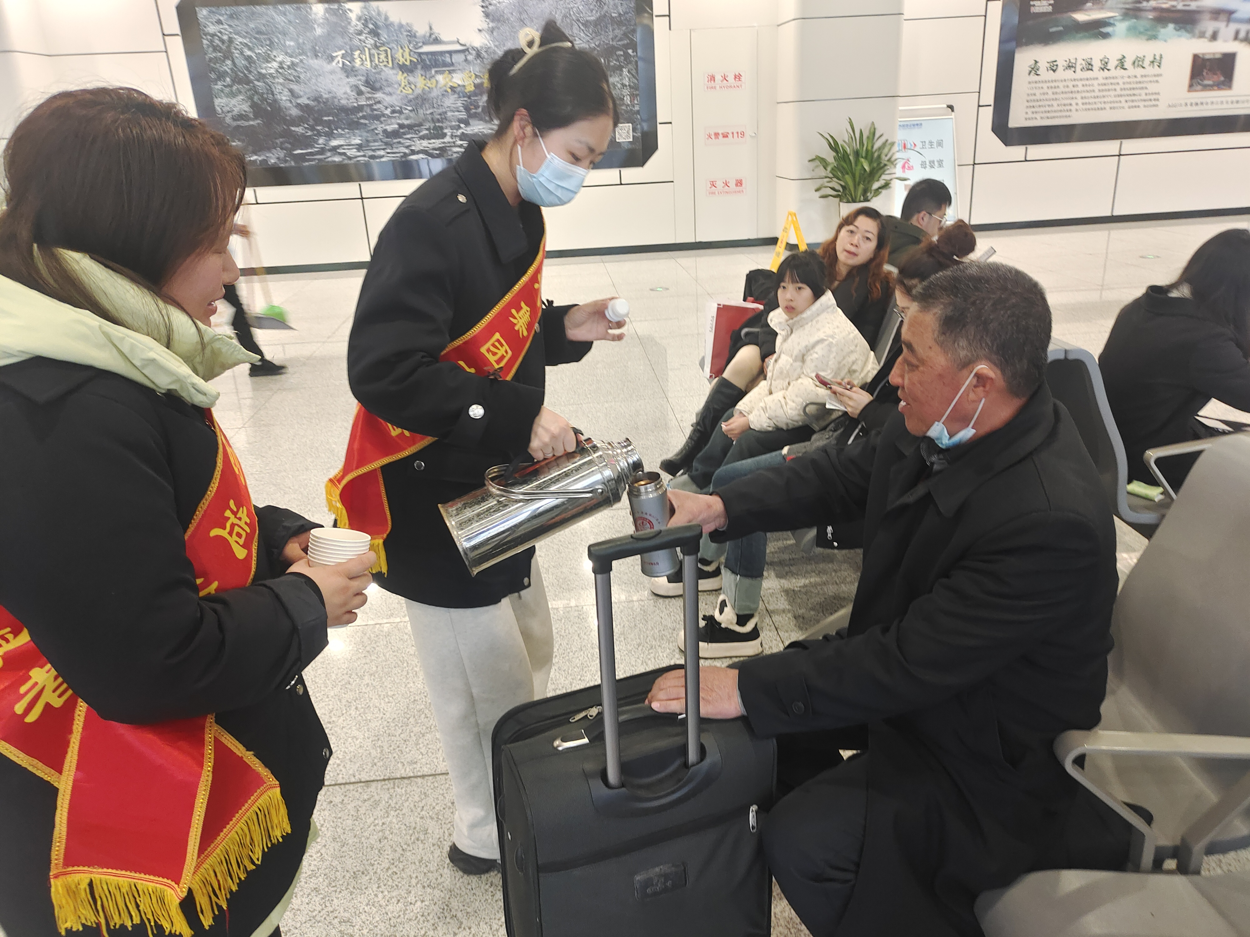 車(chē)站將愛(ài)心驛站臨時(shí)調(diào)整為旅客滯留休息區(qū),為旅客們提供了溫暖舒適的休息環(huán)境,工作人員積極與旅客溝通,為大家送上暖心的茶水,及時(shí)告知班次信息,解答旅客的疑問(wèn),努力緩解旅客們的焦慮情緒。同時(shí),工作人員有序地組織旅客退票,耐心地解答旅客疑問(wèn),提供準(zhǔn)確的信息和合理的建議。他們的專(zhuān)業(yè)和熱情,贏得了旅客們的一致稱(chēng)贊。